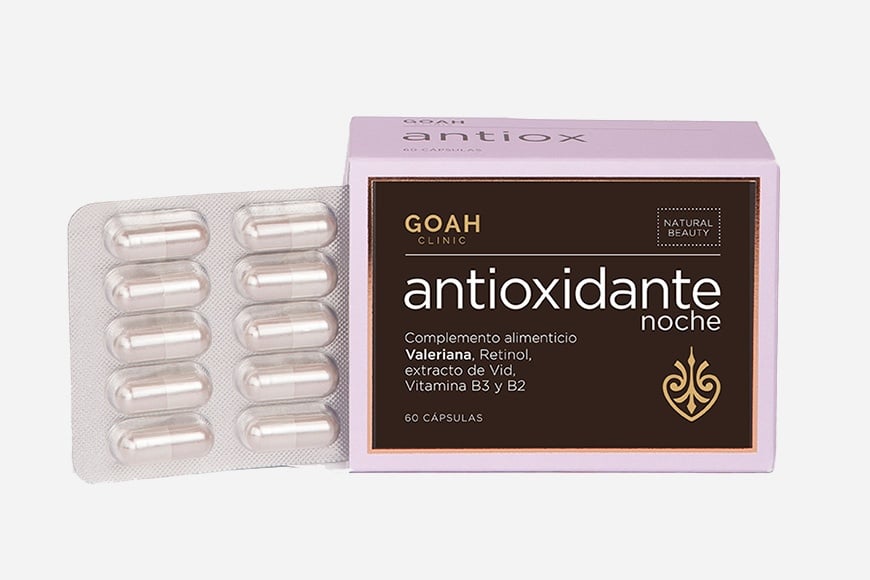 Antioxidante Noche de Goah Clinic, fórmula que potencia el efecto beneficioso del ciclo restaurador del sueño. Nuestra fórmula actúa mientras descansas, frenando la oxidación celular.
